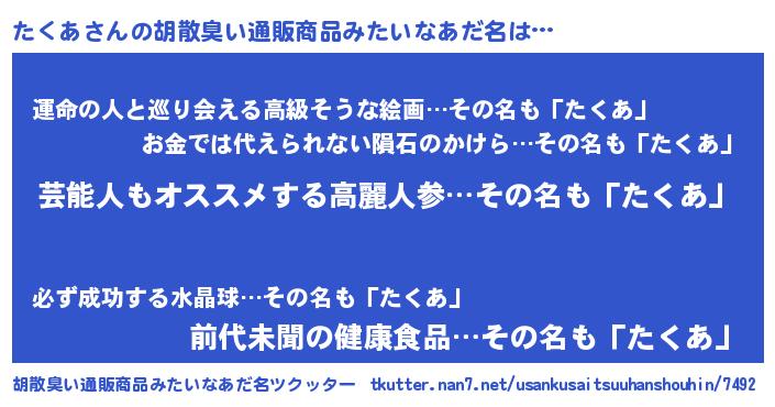 | 意味不明あだ名 | 『自称たくあ』『たくあフォーエバー』 |