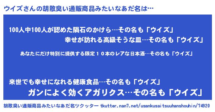 | ヘコむあだ名 | 『酢こんぶ』『ウイズ(苦笑)』 |