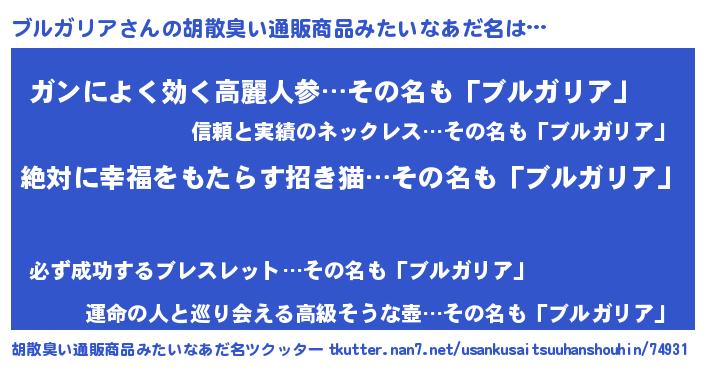 | 欧米人風あだ名 | 『トリンドルブルガリア』 |