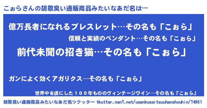 | ヘコむあだ名 | 『こぉら(小並感)』『こぉふぇ~』 |