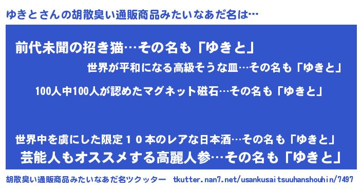 | ヘコむあだ名 | 『ゆきと(笑)』『牛乳』『ゆきを』 |