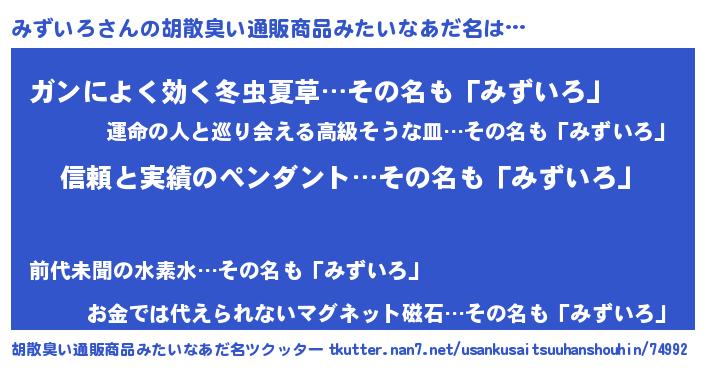 | 意味不明あだ名 | 『とにかく怪しいみずいろ』 |