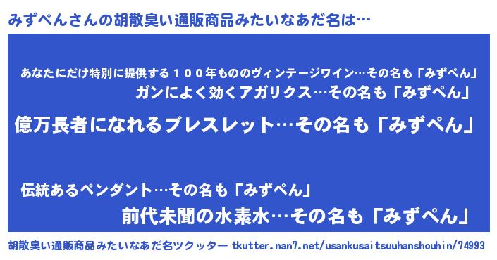 | ヘコむあだ名 | 『みずふぇ~』『みずぺん(小並感)』 |