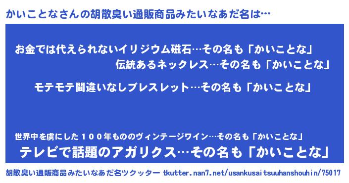 | 女子向けラノベタイトル風あだ名 | 『かいことな姫と円卓の騎士』 |