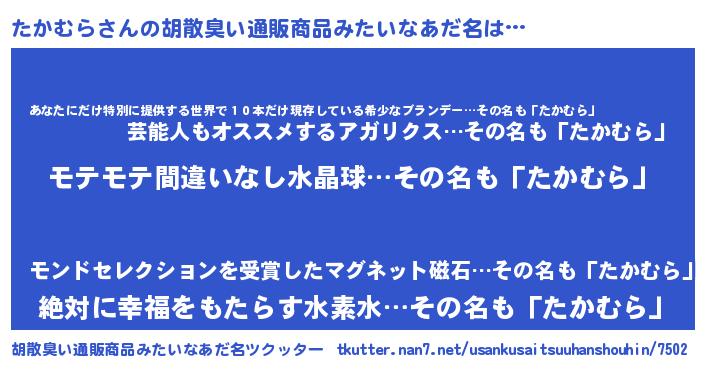| 恥ずかしいあだ名 | 『プリティーたかむら』『たかちん』 |