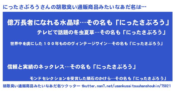 | 意味不明あだ名 | 『住所不定無職にったさぶろう(13歳)』 |