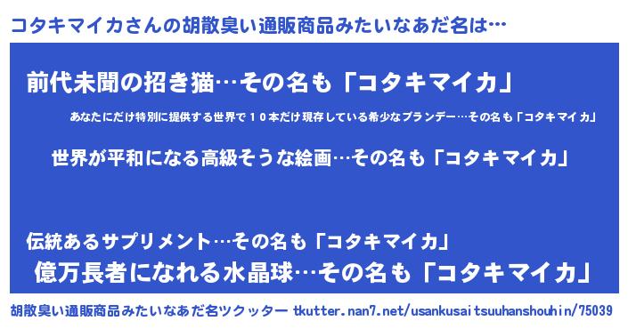 | 意味不明あだ名 | 『コタキマイカフォーエバー』 |