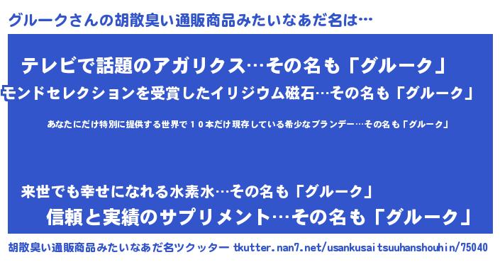 | ヘコむあだ名 | 『グルっぺ』『グルーク(爆)』 |