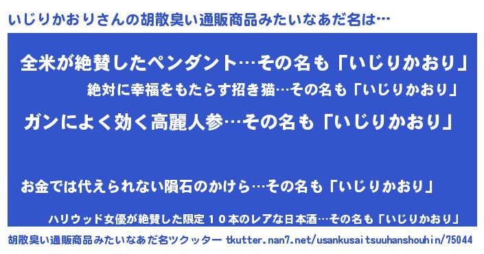 | ヘコむあだ名 | 『いじ太郎』『いじりかおり(震え声)』 |