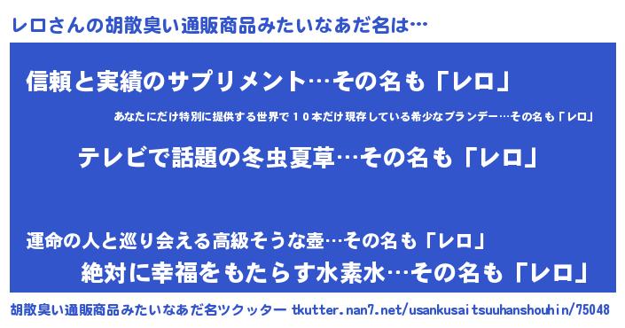 | 男性向けラノベタイトル風あだ名 | 『Re:レロから始める異世界生活』 |