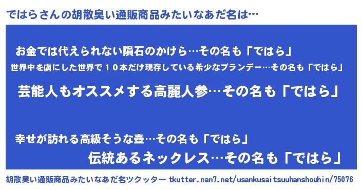 | ヘコむあだ名 | 『ではお』『レバニラ』『ではにゅー』 |