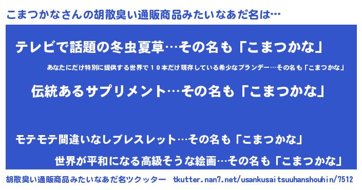 | ヘコむあだ名 | 『こまお』『豆乳』『こまにー』 |
