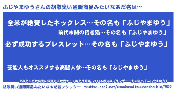 | 恥ずかしいあだ名 | 『プリティーふじやまゆう』『ふじちん』 |