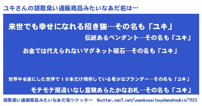 | ヘコむあだ名 | 『ユキ(小並感)』『ユキにゅー』 |