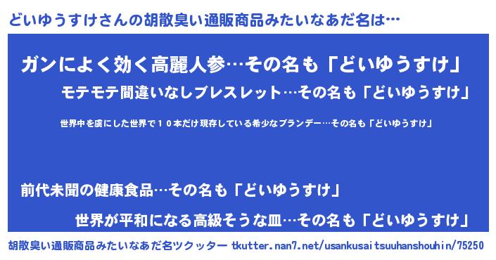 | 意味不明あだ名 | 『住所不定無職どいゆうすけ(93歳)』 |