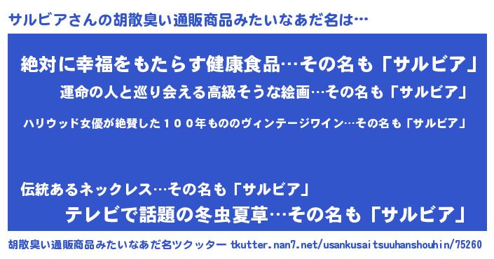 | 男性向けラノベタイトル風あだ名 | 『魔弾の王とサルビア』 |