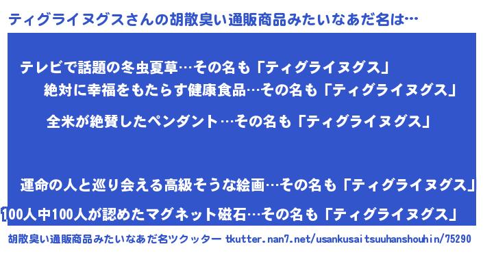 | ヘコむあだ名 | 『ティぷりん』『ティグライヌグス(苦笑)』 |