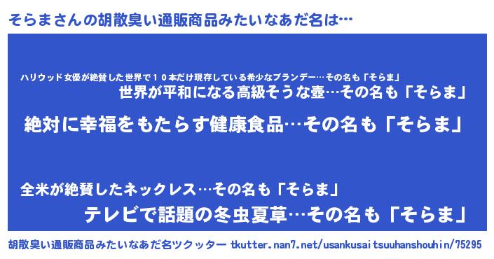 | 欧米人風あだ名 | 『ダルビッシュそらま』 |