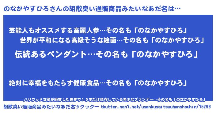 | 男性向けラノベタイトル風あだ名 | 『のなかやすひろの嫁は女の子じゃないと思った?』 |