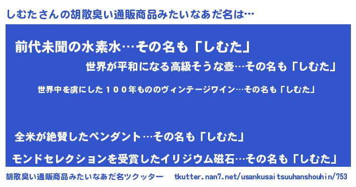 | ヘコむあだ名 | 『しむた(小並感)』『酢こんぶ』 |