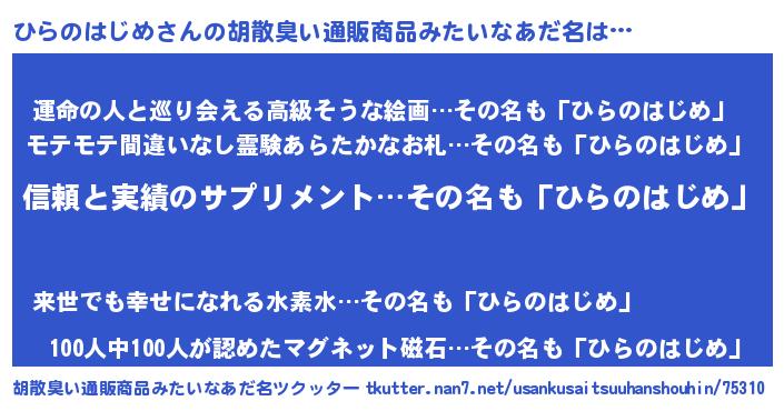 | 意味不明あだ名 | 『とにかく怪しいひらのはじめ』 |