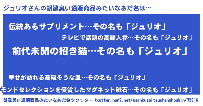 | ヒーロー風カッコイイあだ名 | 『ネオジュリオ』『幻影騎士ジュ』 |