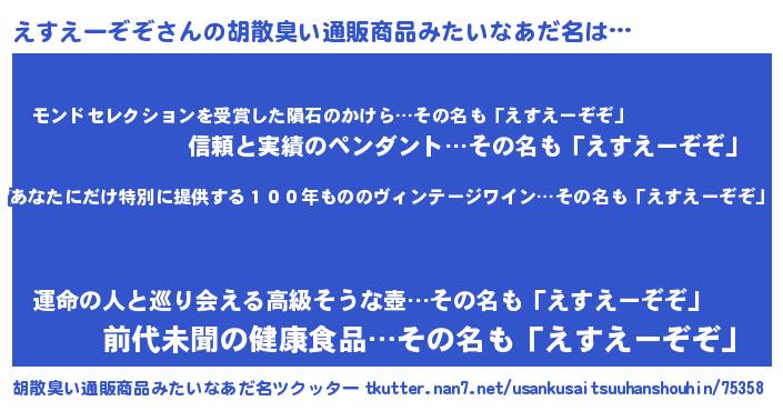 | 意味不明あだ名 | 『住所不定無職えすえーぞぞ(2歳)』 |