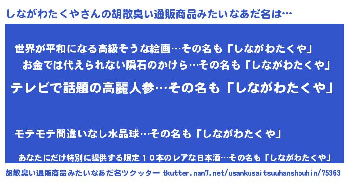 | 意味不明あだ名 | 『自称しながわたくや』 |