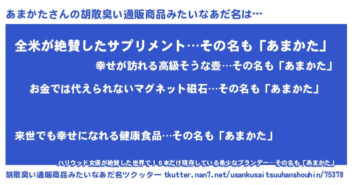 | 男性向けラノベタイトル風あだ名 | 『転生したらあまかただった件』 |