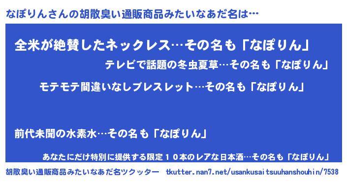 | ヘコむあだ名 | 『なぽふぇ~』『なぽ太郎』 |