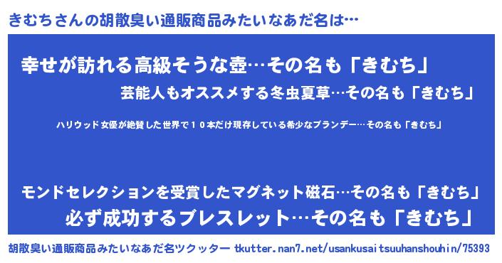 | 意味不明あだ名 | 『住所不定無職きむち(98歳)』『自称きむち』 |