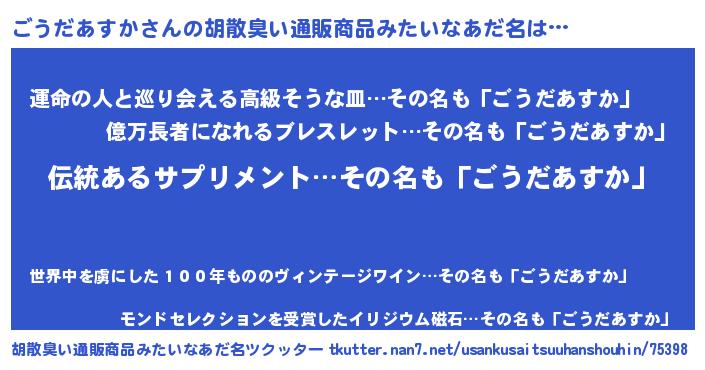 | 意味不明あだ名 | 『とにかく怪しいごうだあすか』 |