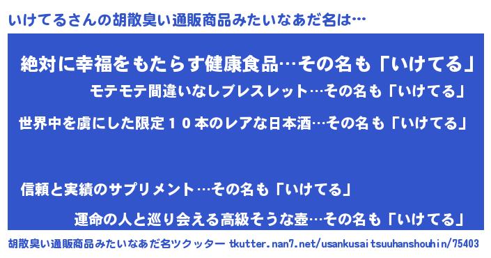 | 意味不明あだ名 | 『住所不定無職いけてる(65歳)』 |