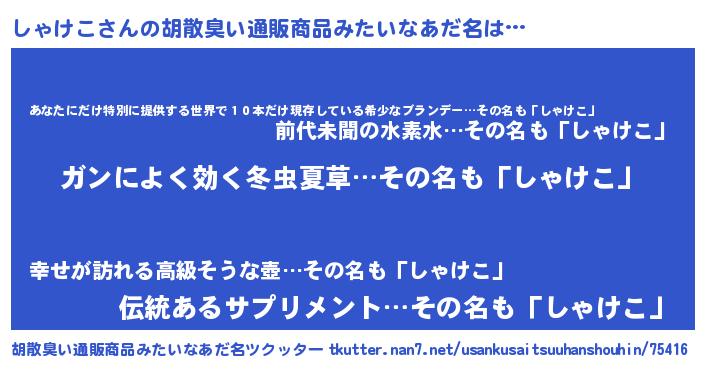 | 意味不明あだ名 | 『自称しゃけこ』『永久保存しゃけこ』 |