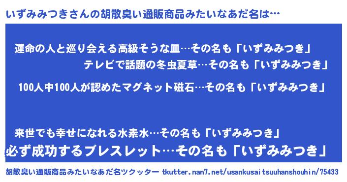 | 男性向けラノベタイトル風あだ名 | 『おまえをオタクにしてやるから、俺をいずみみつきにしてくれ! 』 |