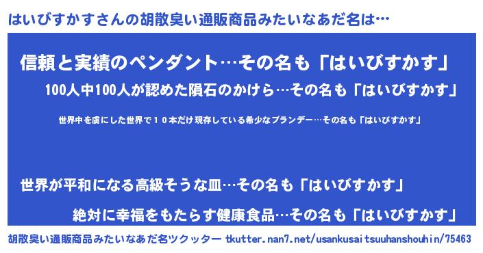 | 意味不明あだ名 | 『住所不定無職はいびすかす(91歳)』 |