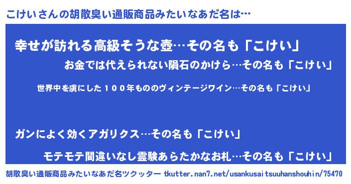 | 意味不明あだ名 | 『住所不定無職こけい(12歳)』 |