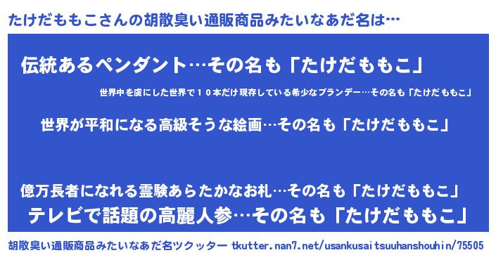 | 意味不明あだ名 | 『たけだももこフォーエバー』 |