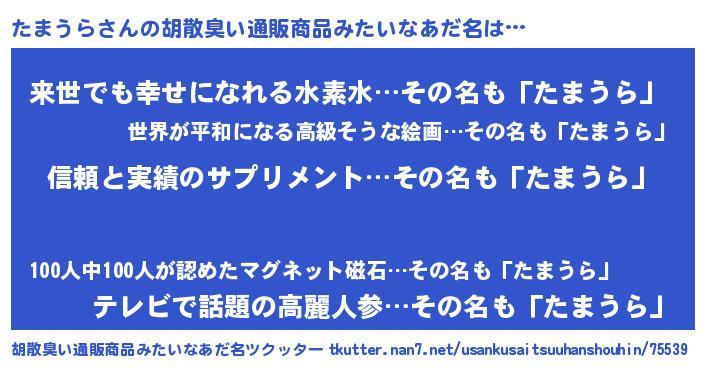 | ヘコむあだ名 | 『たま太郎』『たまうら(震え声)』 |