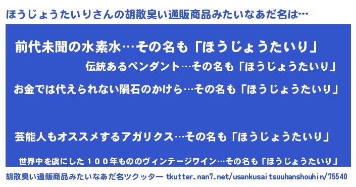 | ヘコむあだ名 | 『ほうじょうたいり(苦笑)』『ほうっ子』 |