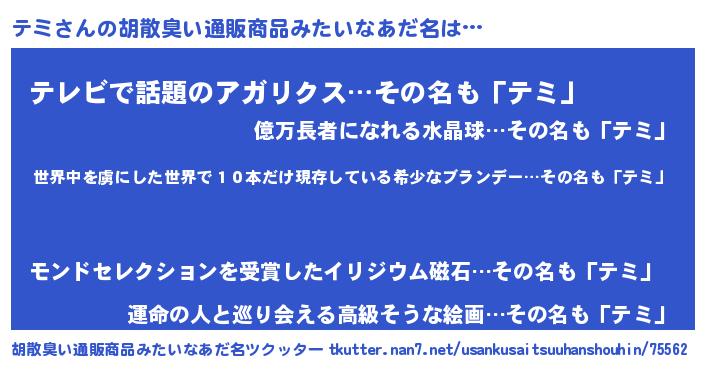 | 意味不明あだ名 | 『住所不定無職テミ(84歳)』『自称テミ』 |