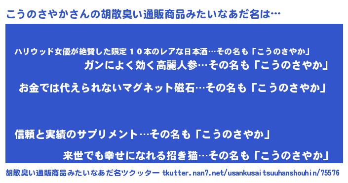 | ヘコむあだ名 | 『こうのさやか(小並感)』『こうお』 |