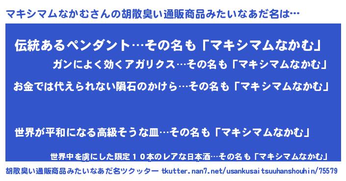 | 男性向けラノベタイトル風あだ名 | 『おまえをオタクにしてやるから、俺をマキシマムなかむにしてくれ! 』 |