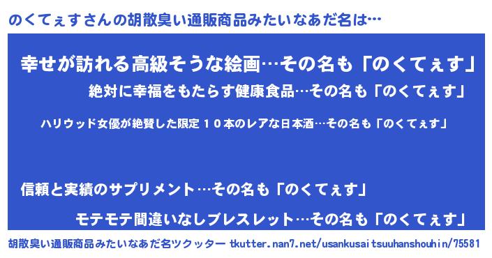 | ヒーロー風カッコイイあだ名 | 『仮面ノクダー』『スーパーノクテェス』 |