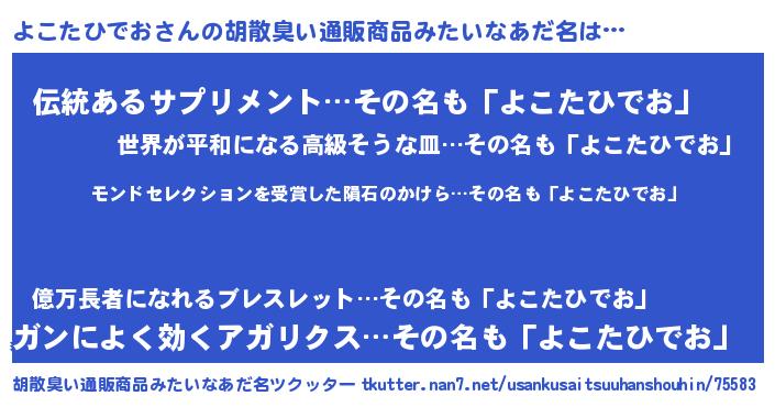 | 肩書あだ名 | 『よこたひでおプロデューサー』 |