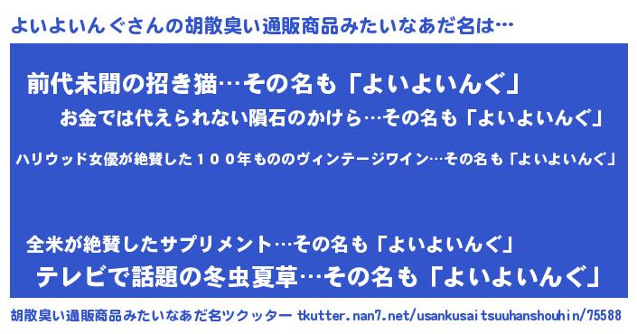 | 意味不明あだ名 | 『住所不定無職よいよいんぐ(2歳)』 |