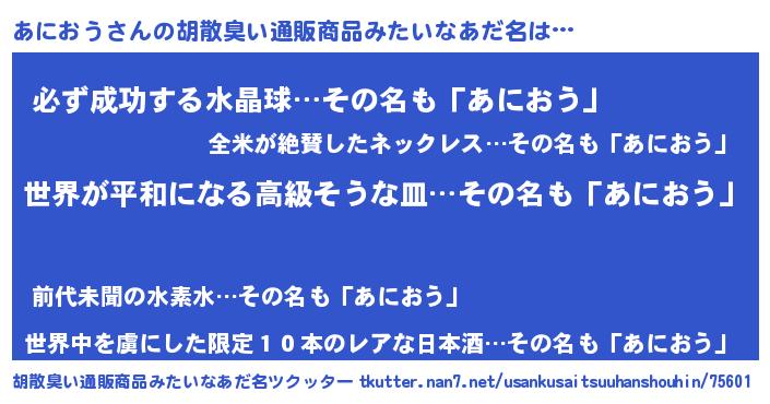 | 肩書あだ名 | 『あにおう上級大将』『あにおう大統領』 |