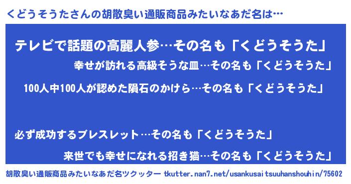 | 肩書あだ名 | 『くどうそうた大将』『くどうそうた船長』 |