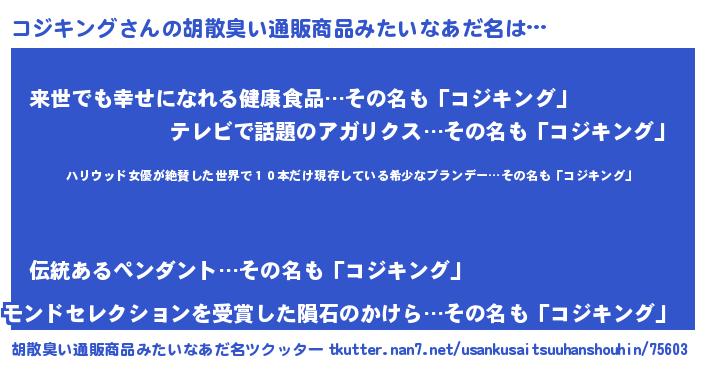 | ヘコむあだ名 | 『コジキング(苦笑)』『コジっちょ』 |