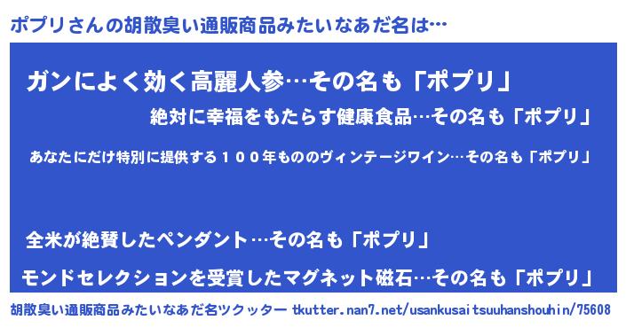 | ヘコむあだ名 | 『ポプリ(笑)』『ポプっ子』『つくし』 |